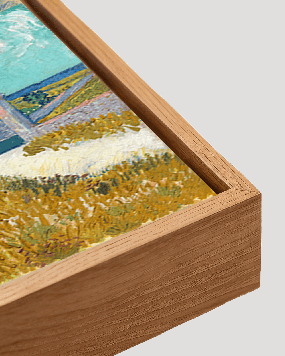Van Gogh’s signature brushwork and vibrant colour palette bring life to the golden fields, soft blue sky, and earthy textures. The composition reflects simplicity, harmony with nature, and the quiet rhythm of rural life. Each brushstroke carries movement and emotion, transforming an everyday scene into a timeless artistic expression.