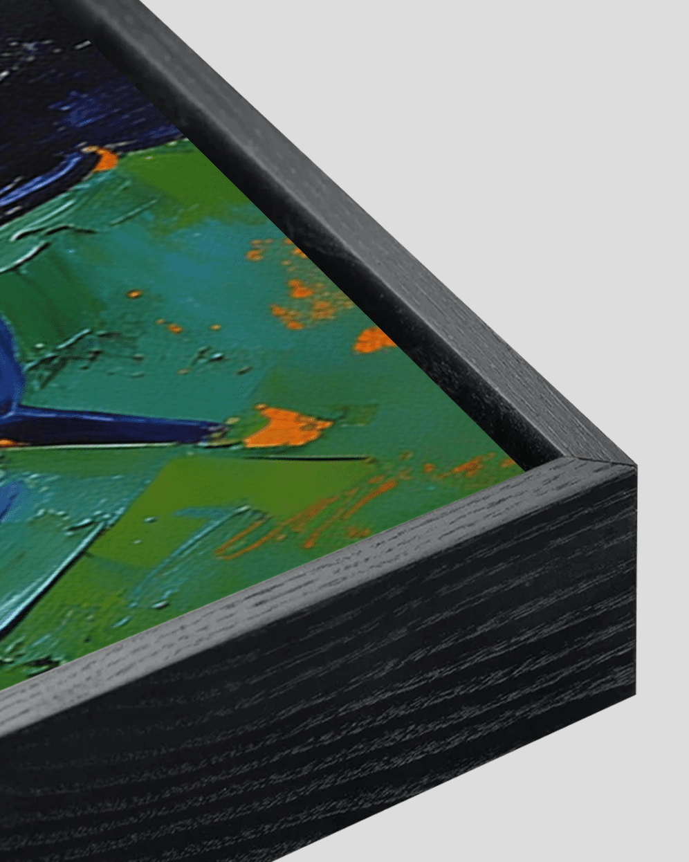The thick impasto technique adds a tactile, three-dimensional quality, making the artwork visually dynamic from every angle. Accents of warm orange subtly contrast the cool palette, bringing energy and depth to the composition.