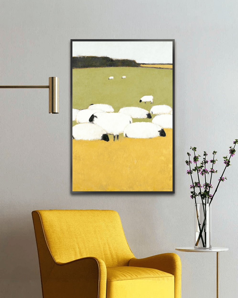 Pasture Gathering brings the quiet charm of countryside living into your home. This artwork features a serene flock of sheep resting and grazing on warm golden fields that merge beautifully into soft green pastures. With its minimalist composition and soothing color palette, this piece perfectly complements modern, rustic, Scandinavian, and farmhouse-style decor.
