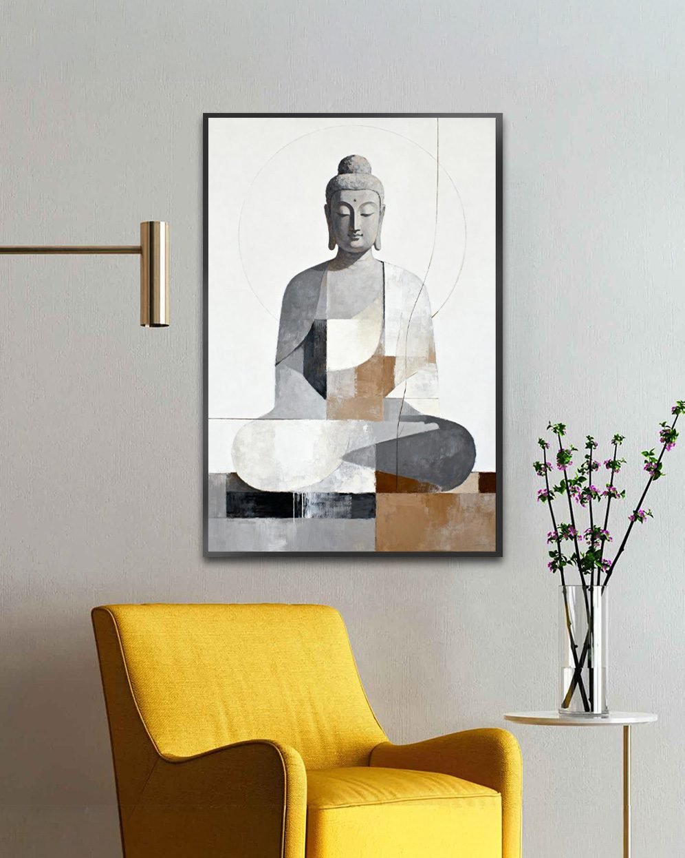 Bring harmony and modern elegance into your space with Tranquil Buddha – Modern Abstract Minimalist Spiritual Art. Designed in calming shades of white, grey, and earthy brown blocks, this artwork creates a serene visual balance perfect for contemporary interiors.
