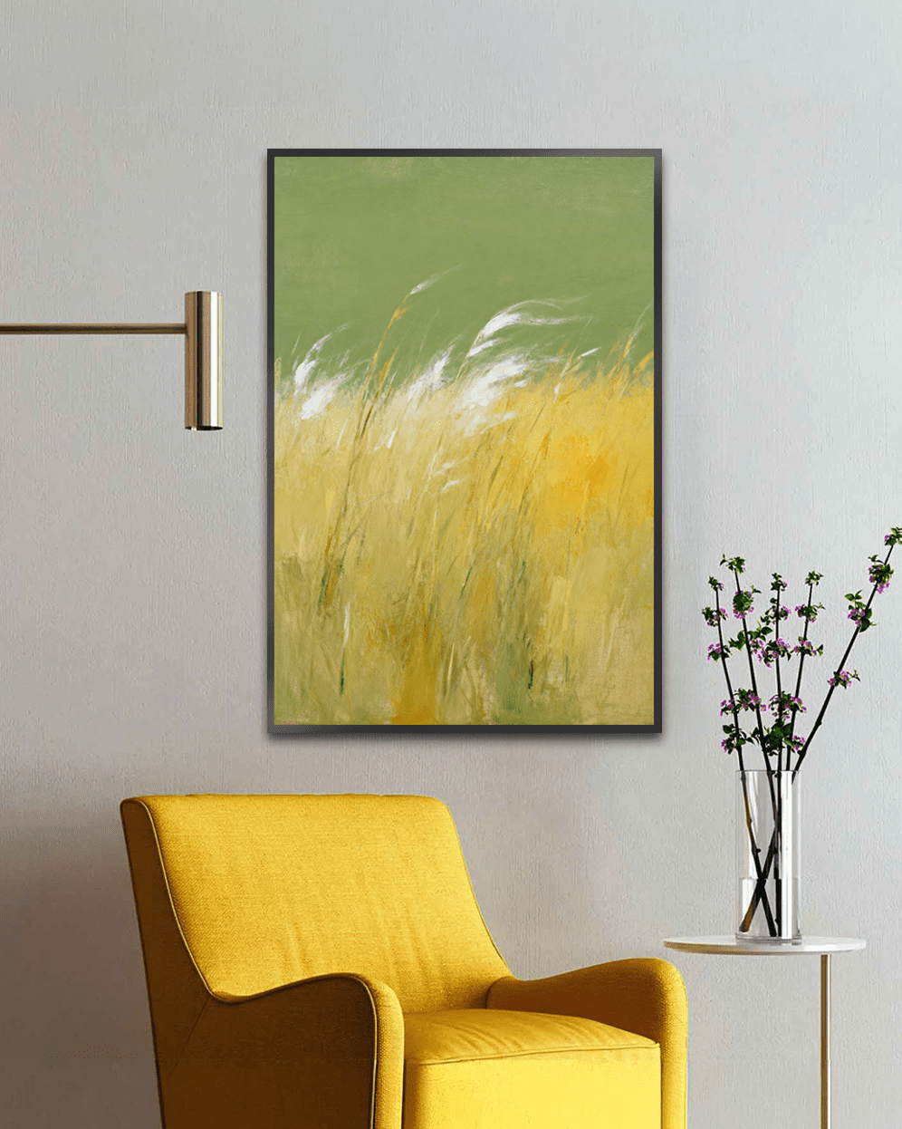 -Warm yellow and soft olive-green palette