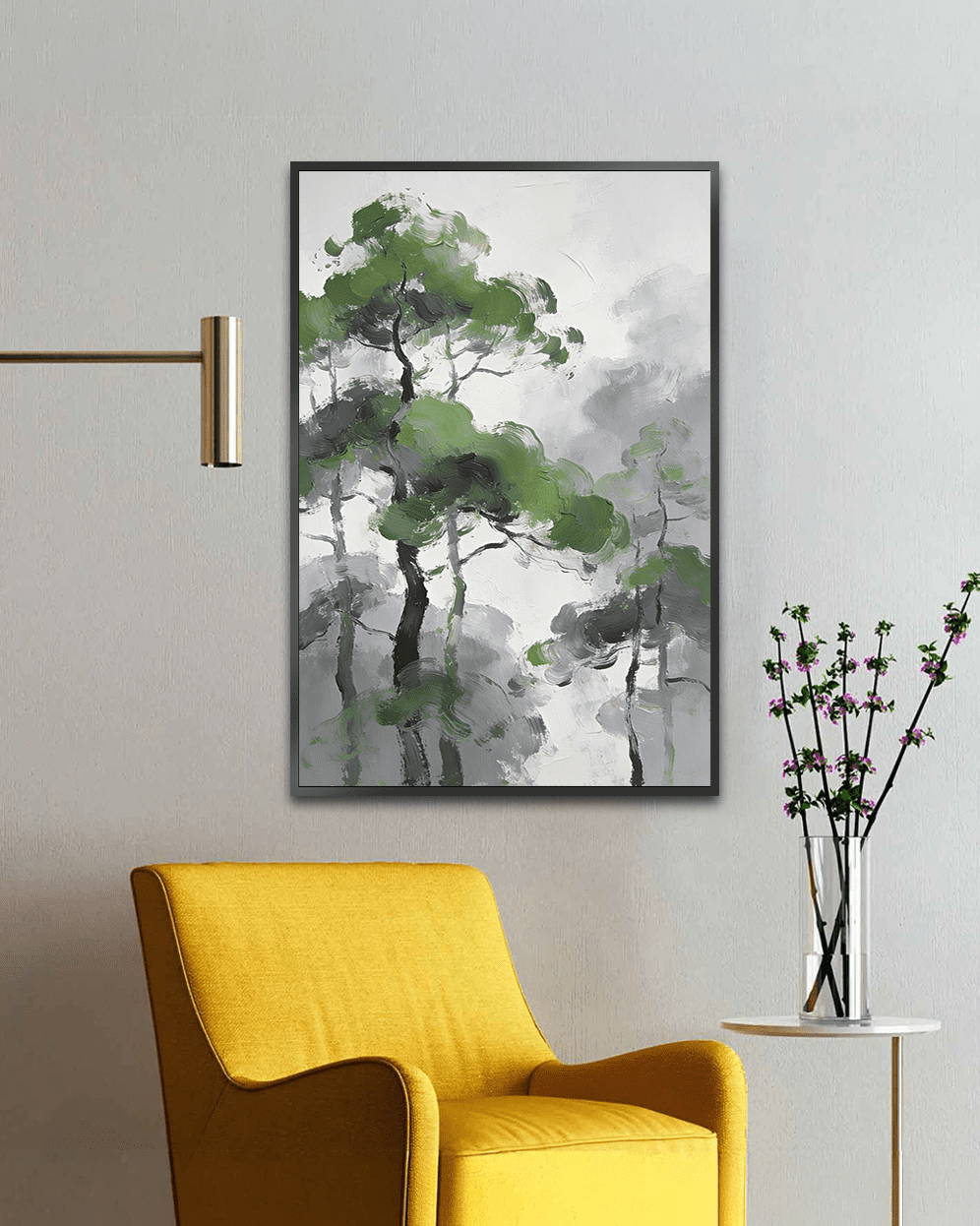 The expressive brushwork gives life to the trees without overwhelming detail, allowing the viewer to feel a sense of stillness and breath. Perfect for modern homes, meditation spaces, bedrooms, or workspaces seeking calm clarity and natural elegance.